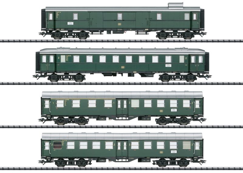 Vorbild: 4 verschiedene Reisezugwagen unterschiedlicher Bauarten in der Ausführung der Deutschen Bundesbahn (DB), für den Eilzug mit dem Zuglauf Nürnberg - Sulzbach-Rosenberg - Schwandorf - Furth i.